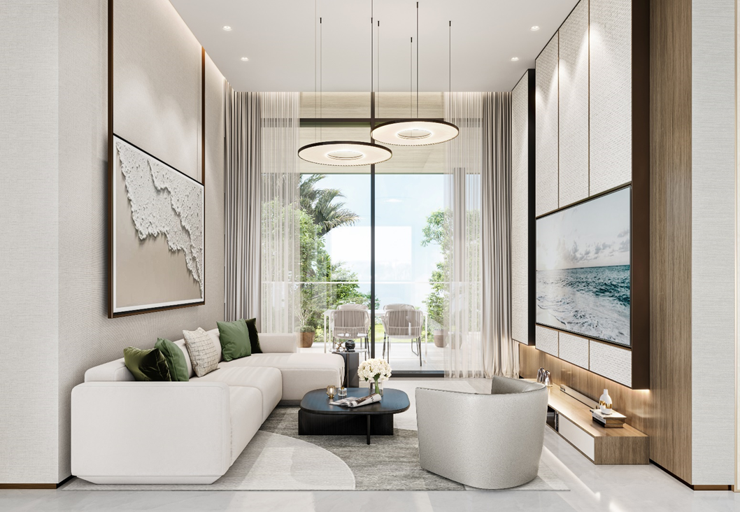 Focused on capturing the essence of the island’s coastal charm, the villas’ large windows and glass doors maximize the view and establish a strong connection with the surrounding environment. Natural materials like limestone and wood complement contemporary styles, emphasizing clean lines and minimalist aesthetics for a sophisticated living experience. Through meticulous landscaping and a carefully selected desert and ocean-inspired colour palette, these astonishing properties create a blend of modernity and coastal beauty.